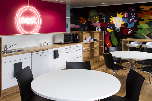 Nest茶水間,下午茶時間,這里總是擠滿了人,勞累了一天,可以說下午茶時間是員工們最輕松的一刻。彼此在談心的間隙,互相交流交流工作上的“懵懂”,或許問題就在這一刻得以解決,也或許生活上的煩惱就能在此刻得到安慰與幫助。