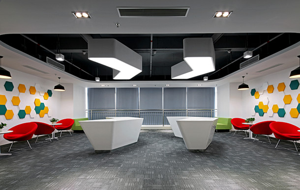多功能區(qū)平面和天花有機的結(jié)合,設(shè)計成公司標識中的一個“網(wǎng)”字概念,也符合企業(yè)自身特性“網(wǎng)絡(luò)”,并把移動互聯(lián)網(wǎng)O2O辦公模式詮釋的淋漓盡致。在企業(yè)愿景方面,設(shè)計師通過多功能廳和前廳設(shè)計結(jié)合,深度提煉出“皇冠”的形態(tài)概念,寓意企業(yè)激流勇進,爭做行業(yè)第一的目標。